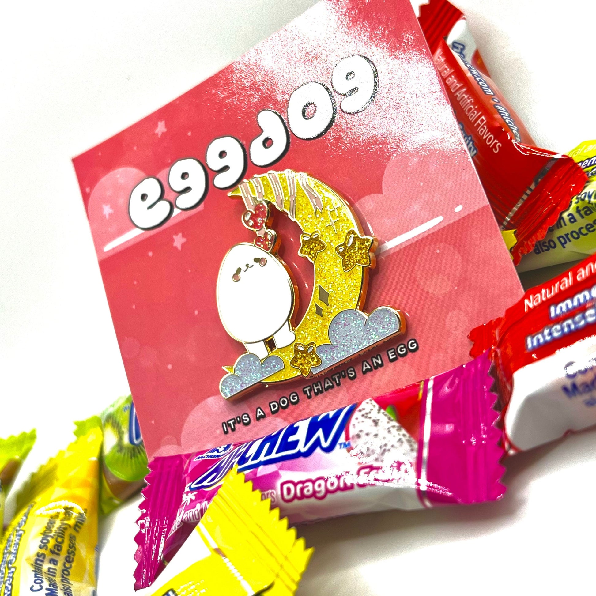 eggdog crescent moon pin